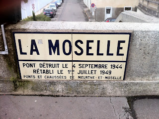 und nehmen noch einen Umweg nach Pont-à-Mousson, die Stadt der Kanaldeckel, wo wir hoffen, in der Touri-Info noch Möglichkeiten der Übernachtung für Jakobspilger zu bekommen.